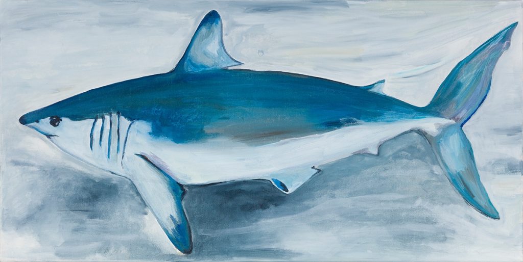 Sharks: Acrylic on Canvas – 36″ w × 18″ h